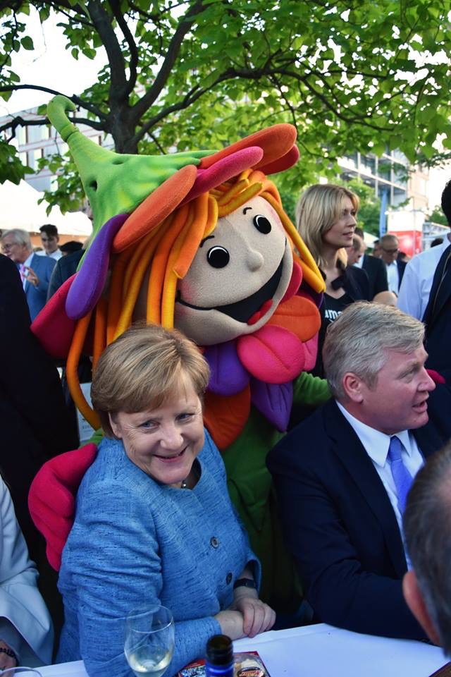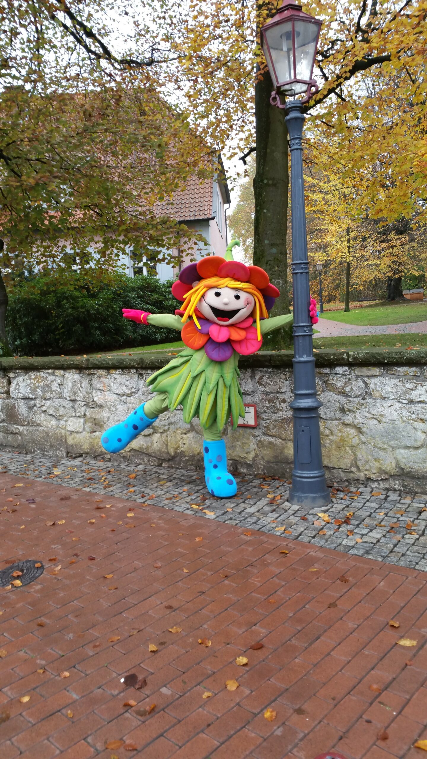 Ist das Wetter auch grau und regnerisch, RosaLotta strahlt, was das Zeug hält. Mit ihrem superfreundlichen Lächeln, den schwarzen niedlichen Knopfaugen, ihren leuchtend bunten Blütenblättern und den pinken Handschuhen hüpft sie immer gut gelaunt in ihren großen Wasserstiefeln durch die Welt. Überall, wo sie auftaucht, sorgt sie für positive Stimmung und spontane Zuneigung. Eine wirklich herzallerliebste Botschafterin für eine absolut sehenswerte Gartenschau unter dem Bad Iburger Schlossberg!