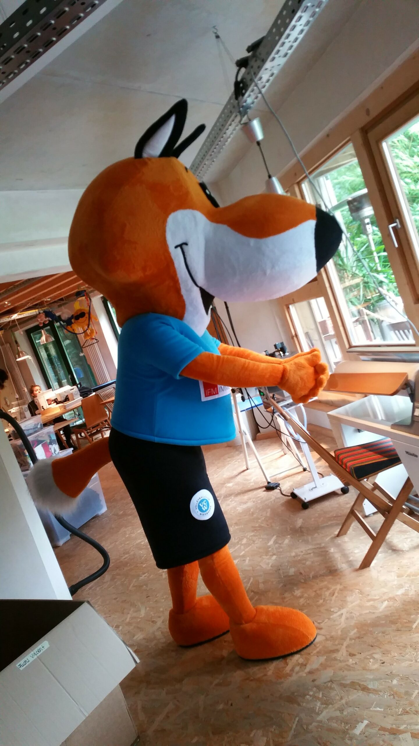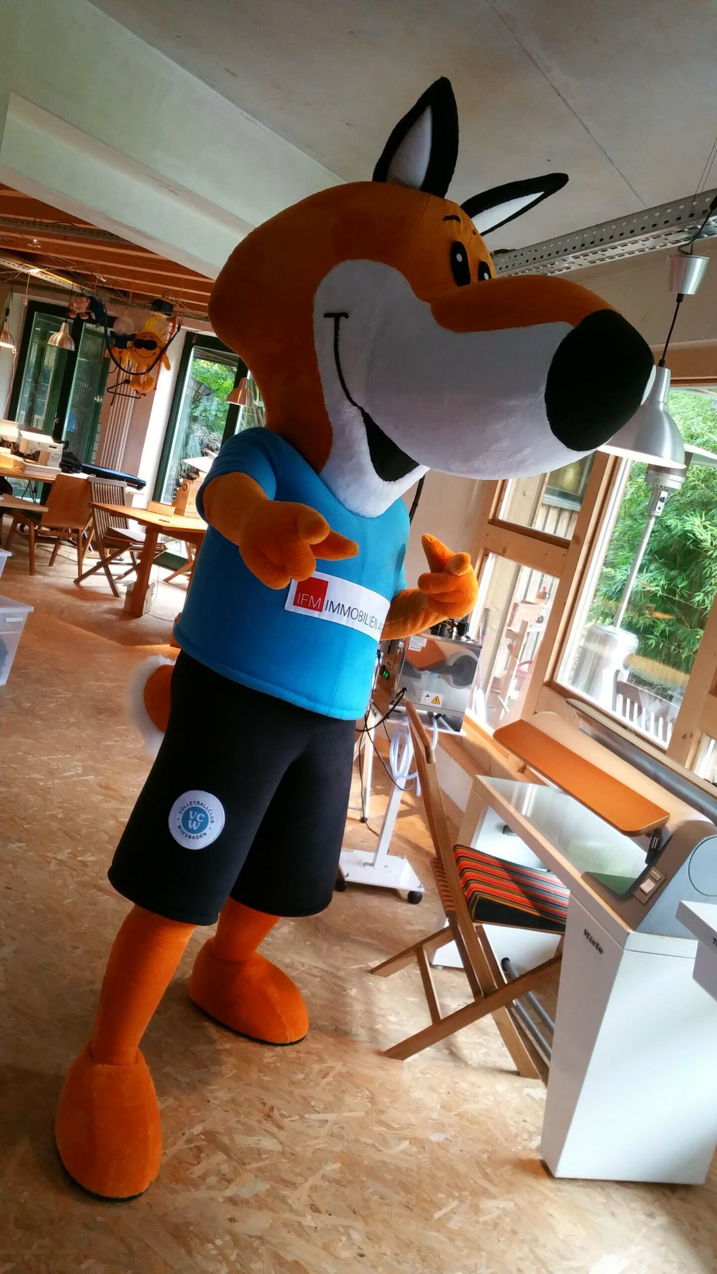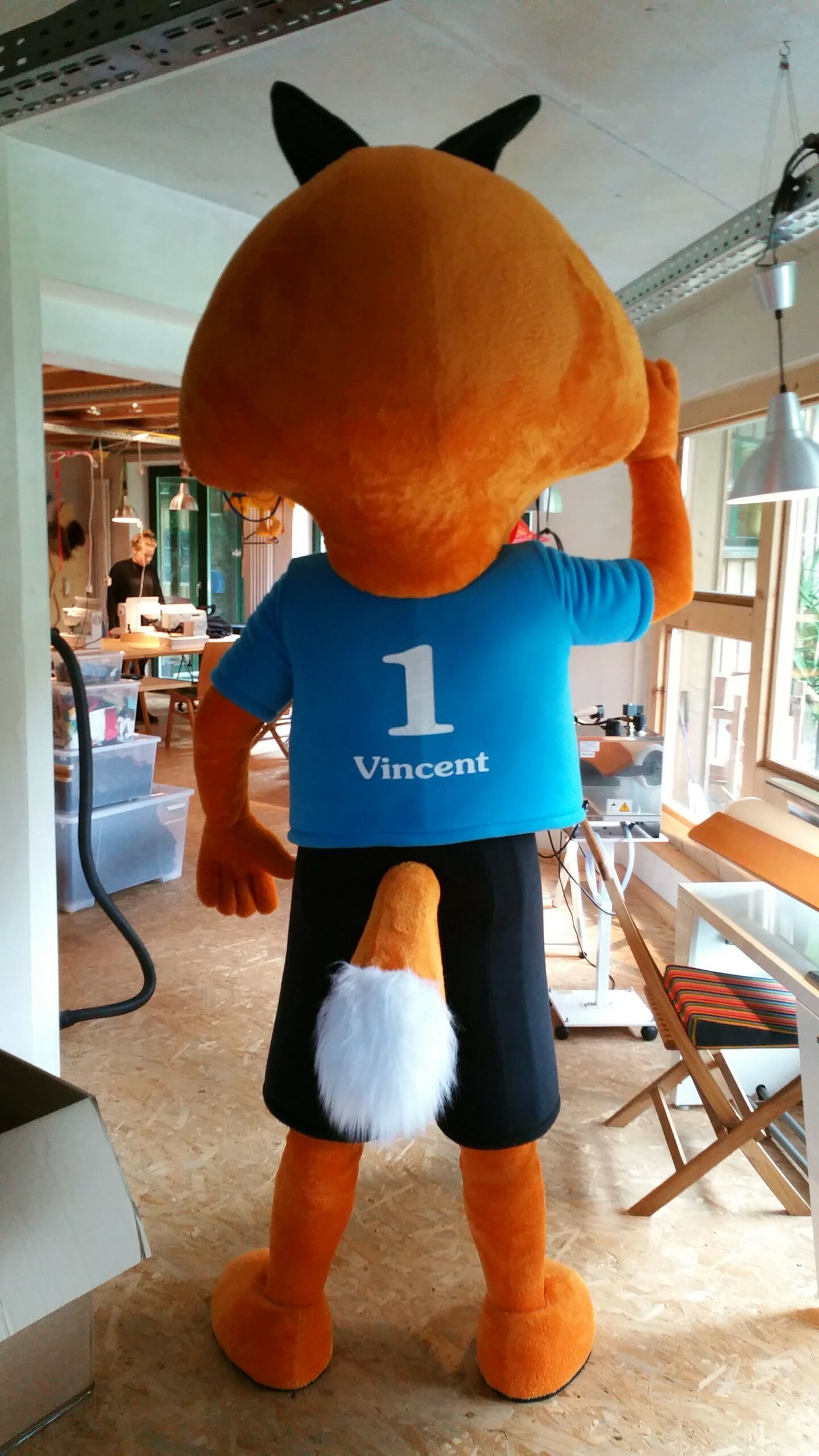 Nachdem wir den flauschigen, orangen Fuchs Vincent im Jahr 2012 zum ersten Mal anfertigen durften, hat er jetzt einen sehr schlanken und beweglichen Zwillingsbruder bekommen. Dieser erlaubt große Beweglichkeit und einfache Waschbarkeit der Einzelteile. Der Kopf ist nun separat und nicht mehr mit dem Korpus verbunden. Beide Kostüme werden nun parallel genutzt. Der gemütliche Vincent zum Repräsentieren und der schlanke Vincent für viel Bewegung und Volleyball-Action.
