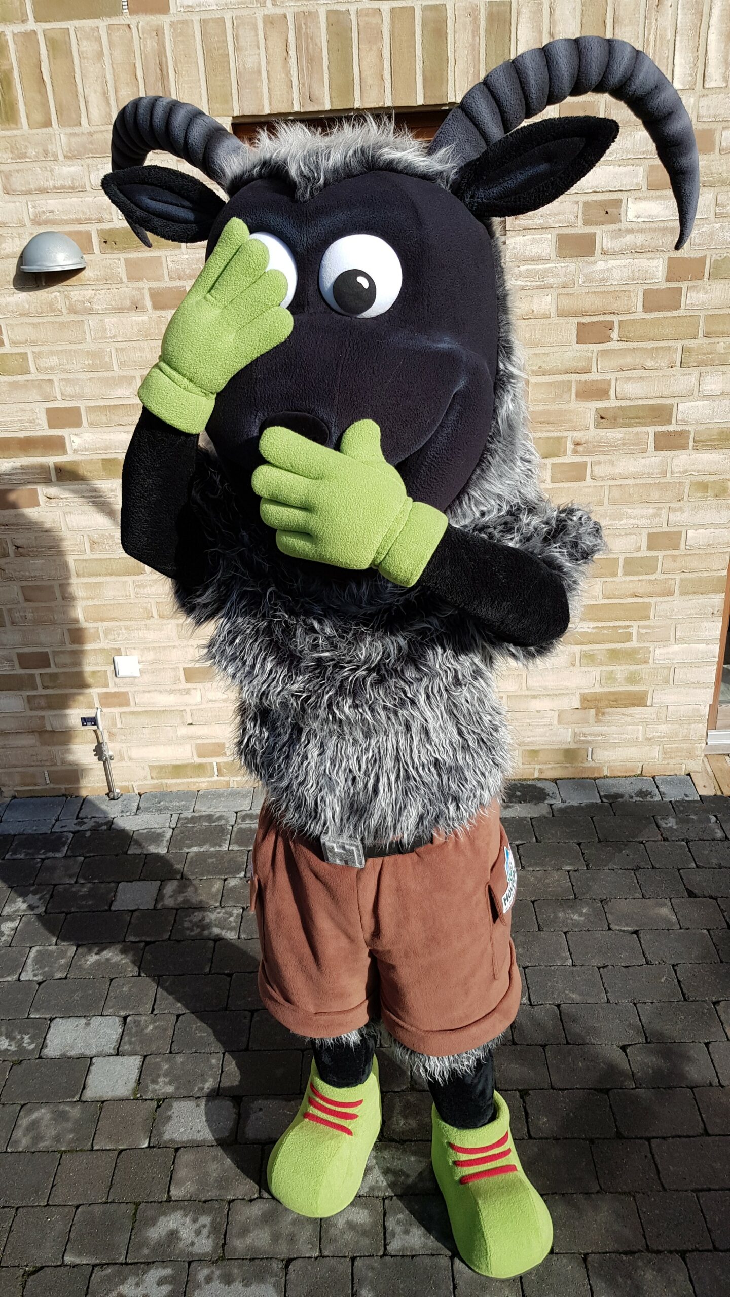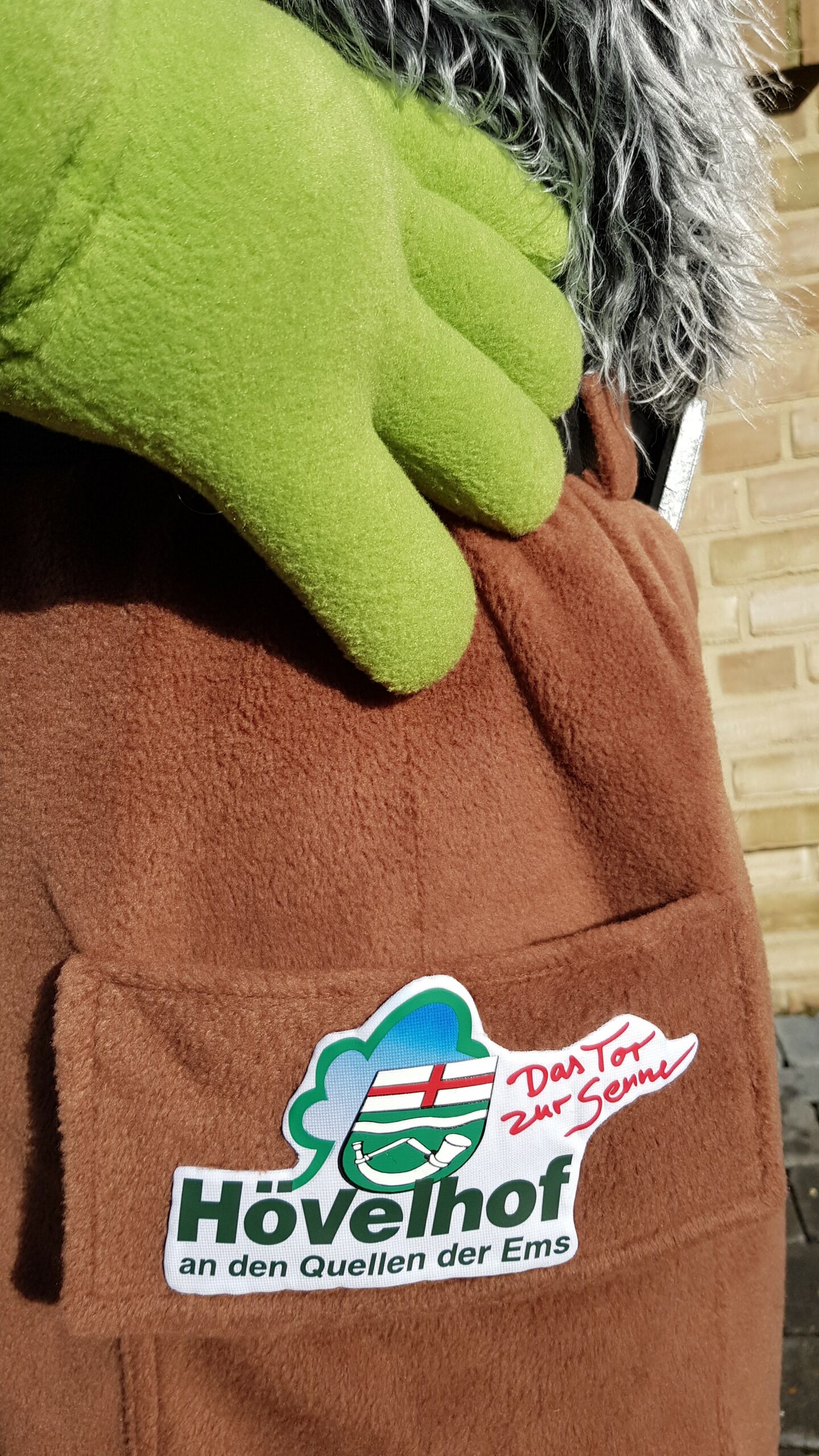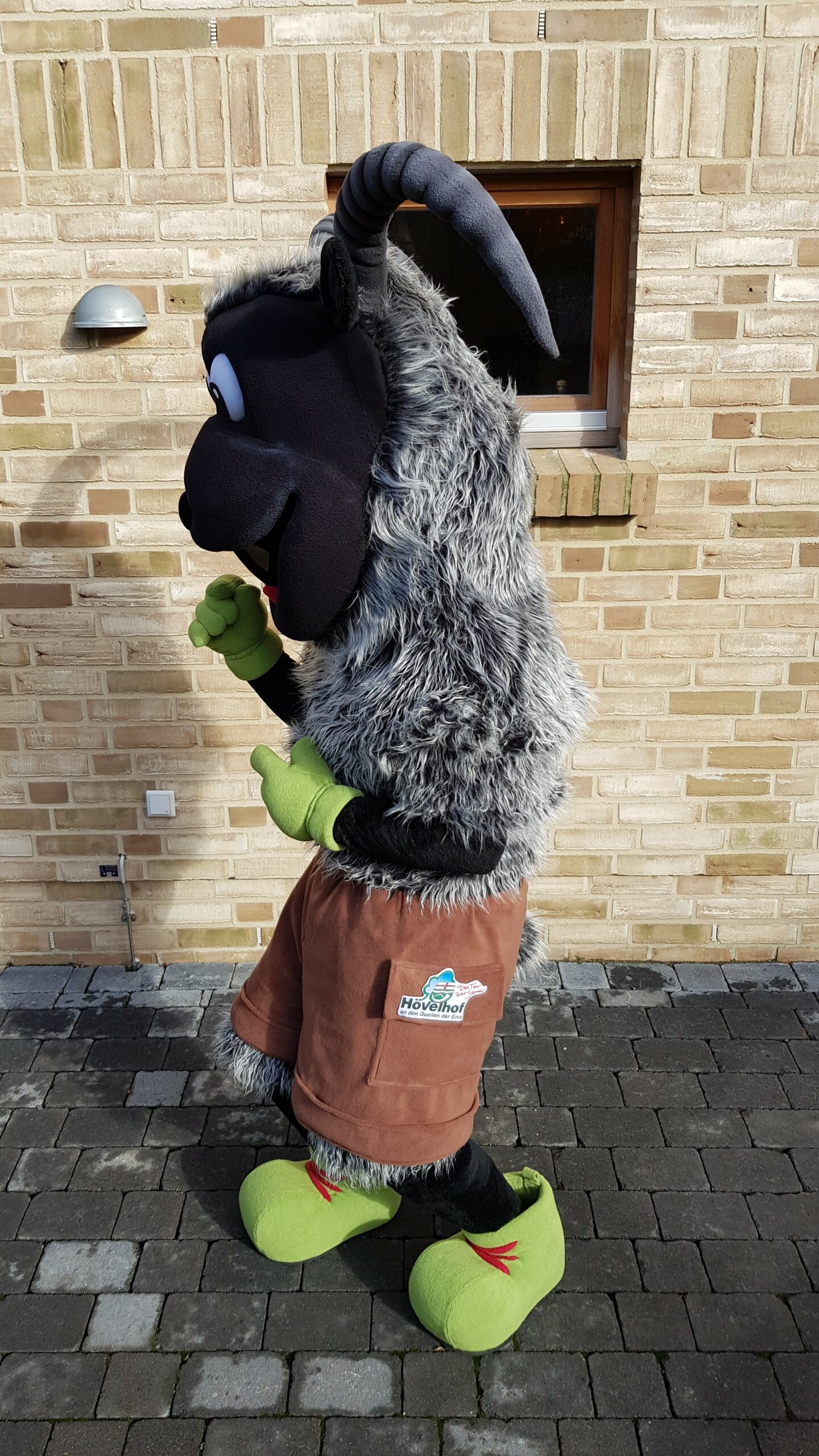 Für die Sennegemeinde Hövelhof entwarf Stefanie Ludwig auf Wunsch des Verkehrsvereins Hövelhof e.V. eine typische Heidschnucke, die ein wenig an Shaun das Schaf erinnern, sportlich sein, zum Logo passen und Fahrrad fahren sollte.