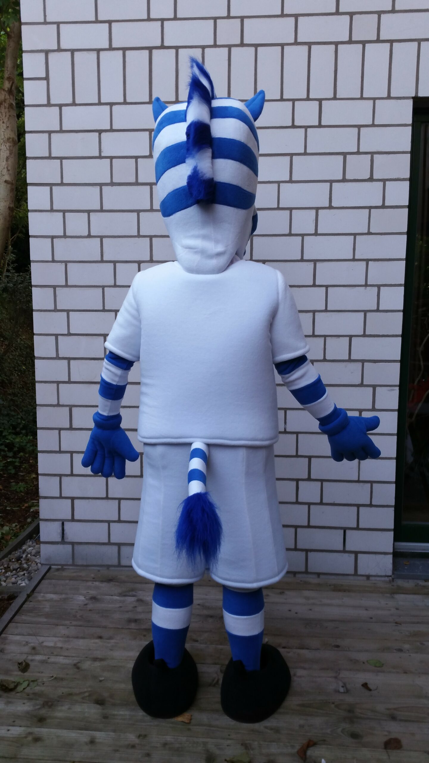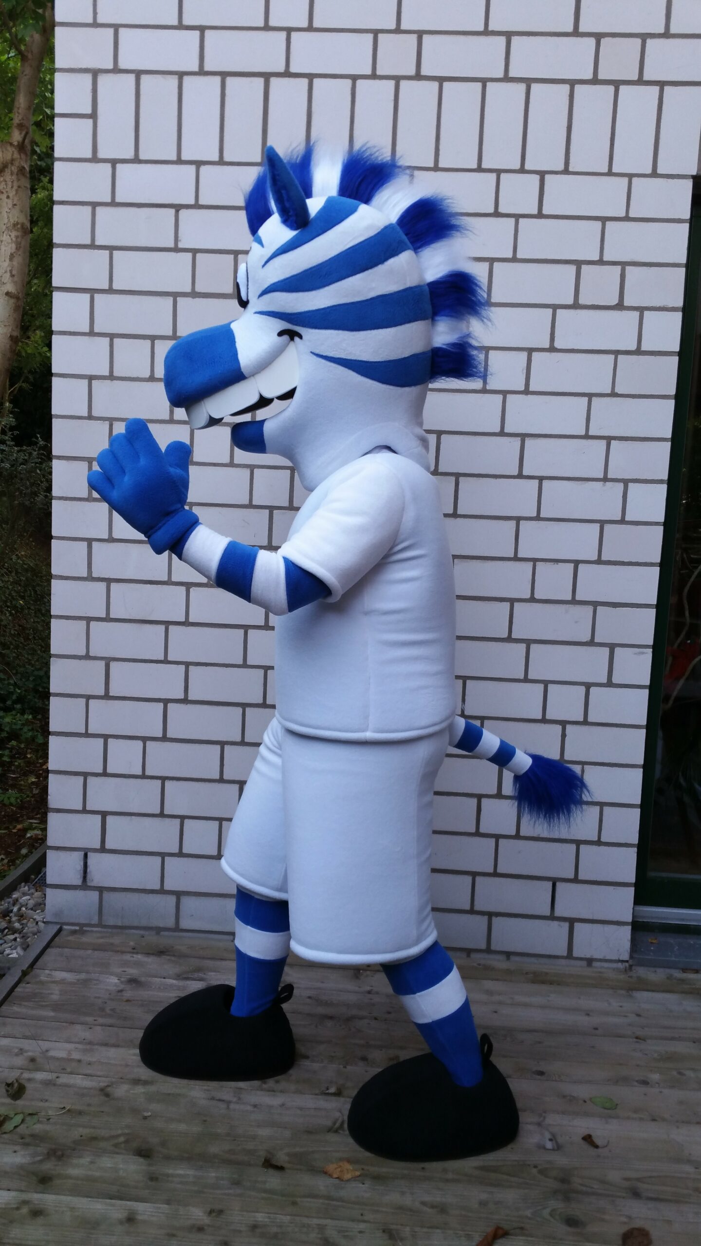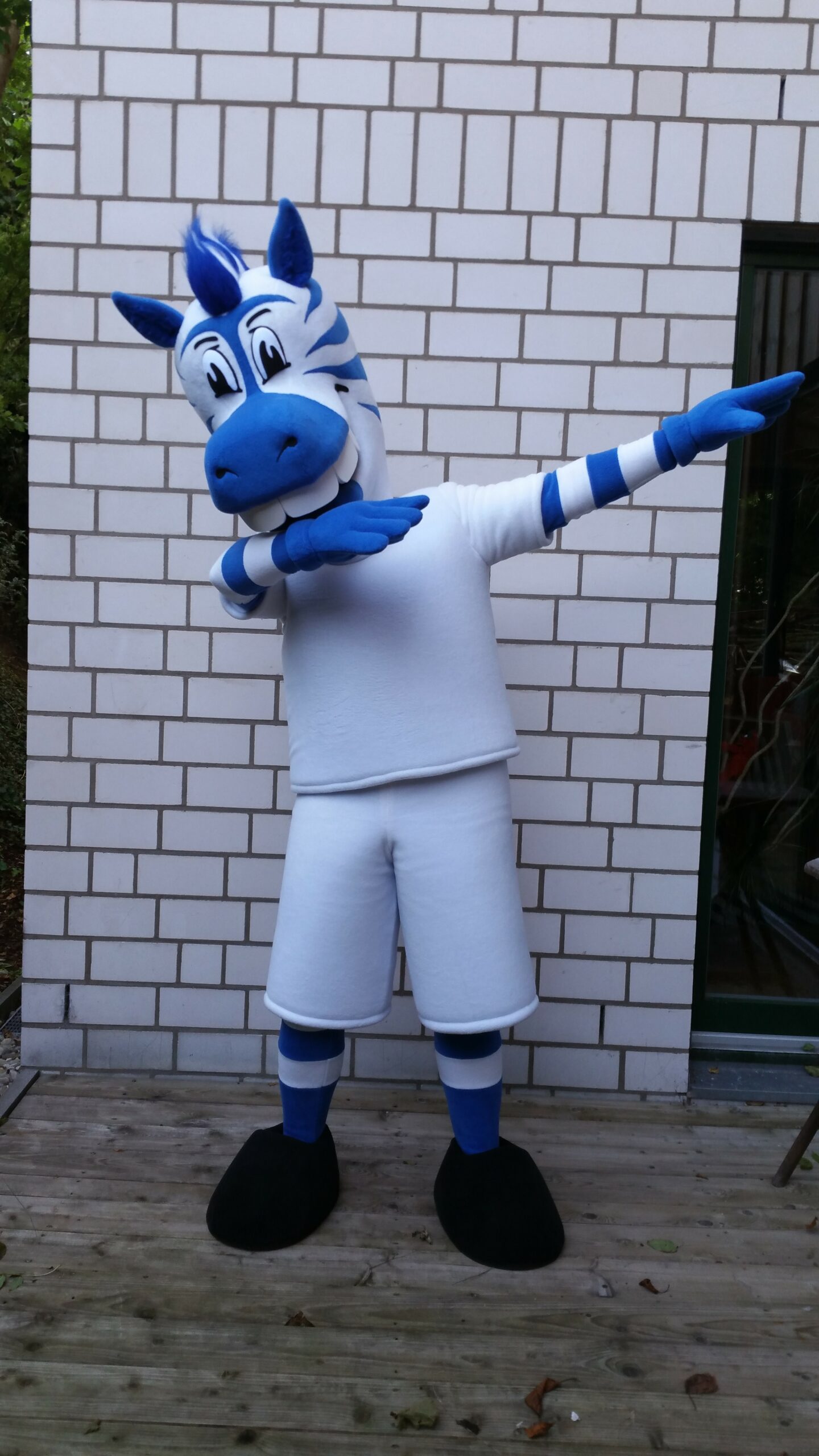 Das Zebra und das Fohlen „Jünter“ sind seitdem im vollen Einsatz und machen jeden Einsatz mit. Egal ob sie bei Freudenausbrüchen über den Haufen gerannt werden, oder sich winkend um den Platz bewegen: Hier fällt nichts ab, hier ist nichts hart, der Kopf bleibt drauf! Beste Luftzufuhr durch offenes Maul, beste Pflegemöglichkeit bei maximaler Formgebung. Alles ist waschbar, sogar der Kopf! Gerade bei dem Kundenwunsch „Weiß“ und sportlich einsetzbar ist dies eine äußerst wichtige Produkteigenschaft.
