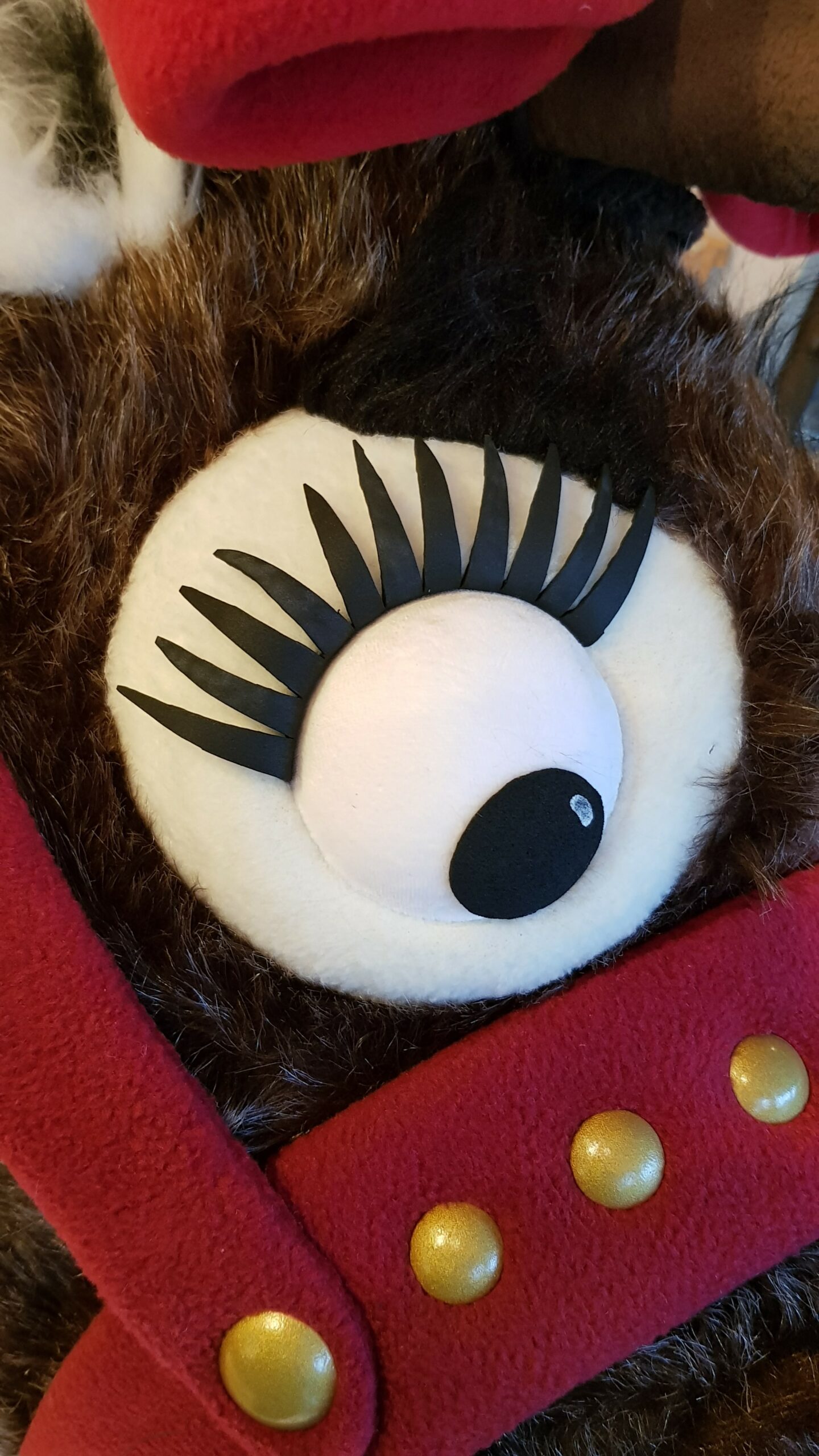 Außerdem sollte die rote Nase für „Fräulein Blitzen“ abnehmbar sein, da sie stattdessen eine strahlend weiße besitzt, dazu kamen noch einsteckbare Wimpern für „Fräulein Blitzen“ und die Geweihschleife für ihren mädchenhaften Look.